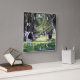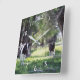A pair of cattle, greenery, grass, trees and sunlight complete this idyllic image in the cattle pasture. The original photograph has been heavily modified to give the impression of a painting.