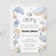 The serene colour palette, reminiscent of the ocean's hues, evokes a sense of tranquillity and joy. The customisable details allow you to personalise the invitation with the name of the parents-to-be, date, time, and location, making it truly unique to your special day.