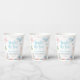 The design features soft watercolor sea animals including a whale, octopus, turtle, jellyfish, and coral elements in a light pastel palette. Personalized text is placed at the center, making these cups a decorative and functional part of your baby shower table.