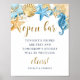 Under the sea blue and gold wedding open bar sign (poster) featuring seahorses, starfishes, seashells, and coral reefs with whimsical calligraphy. For more advanced customization of this design, please click the BLUE DESIGN TOOL BUTTON.