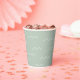 Under the sea paper cups. Light green background with white waves.