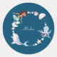 Under the sea custom blue Classic Round Sticker.Cute Mermaid theme girls' birthday party favour sticker featuring watercolor illustration of a Under the sea animals, mermaid, dolphin, octopus etc. Just edit your name to use it.