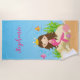 Under the Sea Cute Brunette Mermaid Custom Name Beach Towel