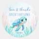 Under the sea cute sea turtle aqua blue baby shower personalised printed thank you favour stickers template, sip and sea baby boy baby shower personalised favour stickers