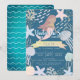 This cute 1st/first birthday invitation features a navy blue background with a mermaid, starfish, jellyfish, shell, coral with a school of fish. The reverse side features a faux glitter sea green background with wave patterns. Perfect for under the sea birthday parties! Personalise it for your needs. You can find matching products at my store.