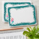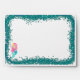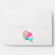 A pretty mermaid party envelope, perfect for those mermaid birthday invites, featuring a cute little mermaid with pink hair in the corner, surrounded by a frame of teal glitter, with (simulated) glitter also on the inside of the envelope, and another cute mermaid on the back. Ideal for a little girl's mermaid birthday party announcement or mermaid baby shower invites (for instance).