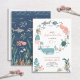 Your baby is turning one! Invite your special guests with this adorable modern under the sea theme invitation featuring a 'wreath' of hand painted ocean animals including a whale, coral, and octopus and more, with hand lettered script typography. The back of the card features an under the sea ocean theme illustration. Copyright Elegant Invites, all rights reserved.