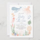 Invite friends and family to celebrate your child's birthday with this 'under the sea' themed invitation, featuring watercolor ocean animals and blue and white watercolor waves on the back.