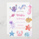Celebrate your little one's special day with this under the sea themed birthday invitation, featuring watercolor sea life of all sorts!