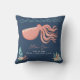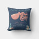 Modern under the sea baby birth stats pillow keepsake record design in blue, featuring octopus, sea animals and coral. The design is the same on both sides. Will make a great addition to the modern baby nursery! Copyright Surridge Design Studio for Personalised Home Decor, all rights reserved.