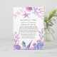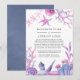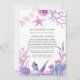 Whimsical pink and blue ocean themed beach reduced wedding guest list announcement featuring sea ferns, seaweed, coral, shells and starfish. In these uncertain times, it can happen that you may have to hold a smaller wedding than originally planned. This announcement card will take away the awkwardness and take a load off your mind! You can furthermore provide an option to join you for a virtual ceremony.