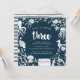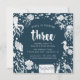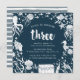 Adorable marine life birthday party invitations for your little one's third birthday feature a dark blue background with white sea life illustrations surrounding your birthday party details.