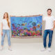 Under the Sea Art prints, posters, gifts and accessories features our original painting of a boy in a yellow swim suit and a girl in a pink bathing suit snorkelling in the ocean watching a puffer fish puff itself up digitally painted by our talented children’s illustrator, Traci Van Wagoner. This colourful artwork is also interactive. Can you find all the silly things on the left side? Find a shark sitting on an orange couch watching TV, and a tonne of other fun stuff that will capture your eye. This whimsical, fun-filled artwork has curious snorkelling children, sea horses, coral, blow fish, mermaids, starfish, eels and other sea life.