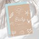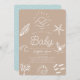 This cute 'Sea You Soon Baby' gender-neutral baby shower invitation features a cafe au lait/brown/tan background with hand-drawn sunshine over waves, a whale tail, a school of fish, seashells, coral, and starfish—all in white. The reverse side features a light turquoise blue background with wave patterns. Personalise it for your needs. You can find matching products at my store.