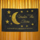 Under the stars, birthday, quinceanera and sweet 16 events. Black night sky background with gold moon and stars