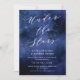 This wedding invitation design features a dark blue night sky background complete with stars. The front of the card also has lovely calligraphy script which says "Under The Stars". This invitation would be perfect for anyone with a nighttime wedding, or anyone interested in astronomy and space.