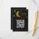 Under the stars quinceanera events. Black night sky background with gold moon and stars