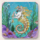 Original watercolor painting by Sandra Gale of a fantasy golden sea horse floating above an under sea tropical reef. Great image for kids, teens and anyone who loves sea horses and the ocean. Makes a great bathroom design too!