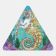 Original watercolor painting by Sandra Gale of a fantasy golden sea horse floating above an under sea tropical reef. Great image for kids, teens and anyone who loves sea horses and the ocean. Makes a great bathroom design too!