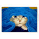 Cute blue eyed cat peeking out from under covers of a blue blanket...
