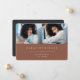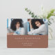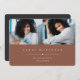 Simple and modern graduation photo announcement features two photos aligned side by side, with the graduate's name, school, and class year beneath in white lettering on an earth tone terracotta background. Your graduate's name and school appear beneath. Add a personal message to the back, along with an additional photo.