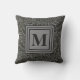 Understated Dark Grey Botanical Pattern Monogram Cushion