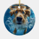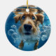 Cute dog swimming underwater with bubbles in clear blue water. Speaking of blue, just look at those eyes!