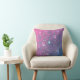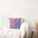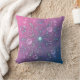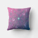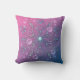 A beautiful throw pillow design featuring a shiny luxurious mandala/snowflake in blue metallic decorated with gemstones on a pastel pink to purple gradient background.