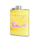 The flask itself is fine. It’s a cheap flask, obviously bought in bulk, however am prepared to overlook that. Given that it is a personalized item, I would have liked to have seen gift boxing instead of the generic packaging. Terrible printing, and/or quality. It’s a cheap, tacky vinyl. It is not cut straight and is also applied in a way that it is overhanging the bottom, causing the glue to catch on items and it will eventually roll and tear, damaging the wrap.