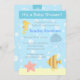 Cartoon design of cute and colourful underwater animals consisting of yellow seahorse, blue jellyfish, striped fish and pink starfish. Make your little baby boy or girl's baby shower extra special with this adorable underwater animals theme shower party invitation card that is going to impress your guests.