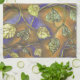 This kitchen towel has my "Undulating Leaves" marker, acrylic paint, and coloured pencils art with leaves from a raspberry bush. Artwork copyright protected by Kristie Hubler. In greens, gold / yellow ochre, plus light and dark periwinkle blues and navy.