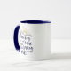 This stylish two-toned scripture mug with navy blue accented rim and handle displays bible verse Psalm 143:8—a comforting reminder that the Lord's tender mercies and steadfast love towards us are renewed every morning. A perfect way to sip while savouring this encouraging truth during your morning devotion time! Available in 11oz and 15oz sizes and with a variety of colour accents using the style picker tool.