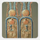 Egyptian 18th Dynasty's Unguent box in the form of a double royal cartouche, from the tomb of Tutankhamun (c.1370-52 BC) New Kingdom (gold plated wood inlaid with glass paste) located at the Egyptian National Museum, Cairo, Egypt. The Unguent box in the form of a double royal cartouche, from the tomb of Tutankhamun (c.1370-52 BC) New Kingdom (gold plated wood inlaid with glass paste) was created around the 14th century.