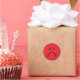 Custom round stickers featuring a red, unhappy face. A green, happy in the same style is also available.