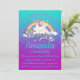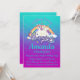 This girly fully customisable birthday invitation features a gorgeous unicorn cartoon and a lovely gradient background of teal and purple.