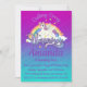 This girly fully customisable birthday invitation features a gorgeous unicorn cartoon and a lovely gradient background of teal and purple.