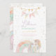 Gorgeous unicorn themed birthday party invitation with rainbows and faux gold accents.