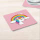 Unicorn and Rainbow with Clouds Kawaii Square Paper Coaster