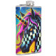 The flask itself is fine. It’s a cheap flask, obviously bought in bulk, however am prepared to overlook that. Given that it is a personalized item, I would have liked to have seen gift boxing instead of the generic packaging. Terrible printing, and/or quality. It’s a cheap, tacky vinyl. It is not cut straight and is also applied in a way that it is overhanging the bottom, causing the glue to catch on items and it will eventually roll and tear, damaging the wrap.
