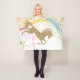 Unicorn baby blanket with beautiful gold unicorn on a pastel pink rainbow background. This pretty unicorn blanket is easily customised by simply adding the text of your choice in the font style you prefer. You can also change the background colour on this adorable unicorn blanket. This is a printed design with no real glitter, foil, etc.