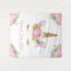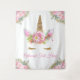 Unicorn baby shower backdrop with adorable unicorn face with pretty gold horn and pink flowers on a pink and gold rose background. This large unicorn baby shower table backdrop is easily customised with the text of your choice. You can also move the unicorn face as needed for your text.