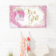 Unicorn baby shower banner with adorable pink princess unicorn on a pretty pink and gold background. You can add the text of your choice to personalise this sweet pink and gold unicorn baby shower banner. You can also change the background colour. This is a printed design with no real glitter.