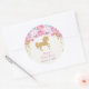 Unicorn baby shower stickers, pink and gold classic round sticker