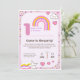 Celebrate your baby’s 1st birthday with this sweet pastel rainbow and unicorn-themed invitation. Featuring soft pink tones, cute hearts, stars, and a cheerful rainbow, this design is perfect for a magical first birthday celebration. Fully customizable with your baby’s name, date, time, and venue details. Ideal for printing or digital sharing.