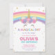 Rainbow Unicorn Birthday Party Invitation, featuring a cute unicorn and a pretty rainbow. Personalise this vibrant Rainbow Unicorn Birthday Invitation with your party details easily and quickly, simply press the customise it button to further re-arrange and format the style and placement of the text. Great for ANY AGE! Exclusive design (c) The Happy Cat Studio. Matching items available in store!