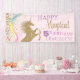 Unicorn birthday party banner with pretty gold glitter unicorn and hearts and rainbow swirls on a choose your own colour background. You can easily customise this unicorn birthday banner for your event by simply adding the text of your choice. This is a printed design with no real glitter.