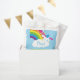 Cute colourful and sweet this cartoon unicorn birthday party design is great for a fantasy toddler, kids or baby birthday party!