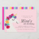 A unicorn invitation with a colourful, floral mane.
