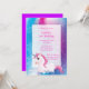 Unicorn Birthday Party Invitations This unicorn birthday party invitation is accented with a vibrant colourful background and highlighted with flowers. The unicorn is oh so sweet and adorable. The ideal birthday invitation for any little girl of any age.