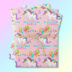 Unicorn Birthday Party Personalise Girl's Name and Age 3 Colourful Wrapping Paper Sheets